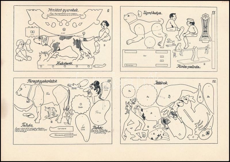 1930 Szlőjdminták, fűrészelési gyakorlatok mintakönyvfüzet különféle játékok, dísztárgyak készítésére, 52 minta és annak leírása, kiadta: M. kir. államit térképészet, szép állapotban, 41p