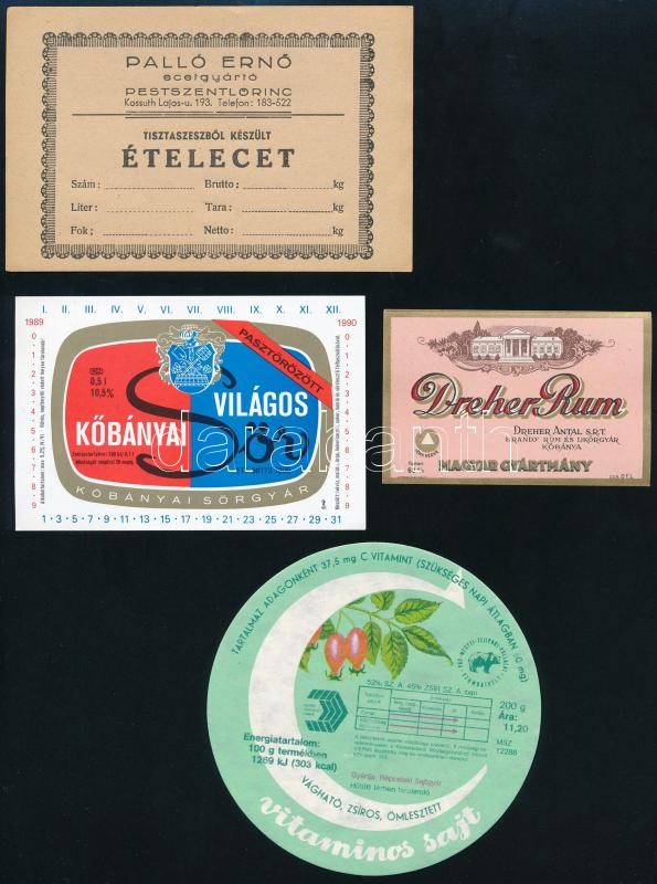 Leírás: 15 db csoki, sajt és italcímke, közte Arany Ászok, Dreher Rum, Suhajda, Édes Anna stb.
