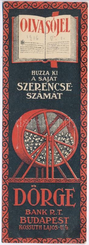 Leírás: 1916 Dörge Frigyes Bank Rt olvasójele, "Huzza ki a saját szerencse számát", kis gyűrődéssel, 13,5x5 cm