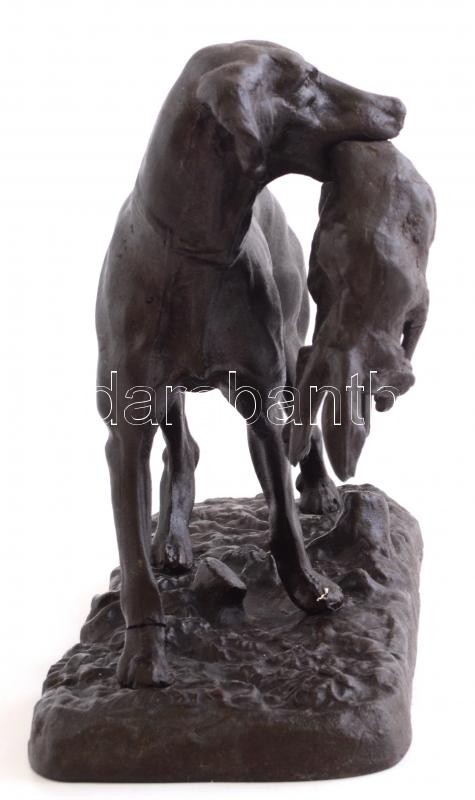 Leírás: Vadászkutya, öntöttvas figura, jelzés nélkül, 20×26 cm