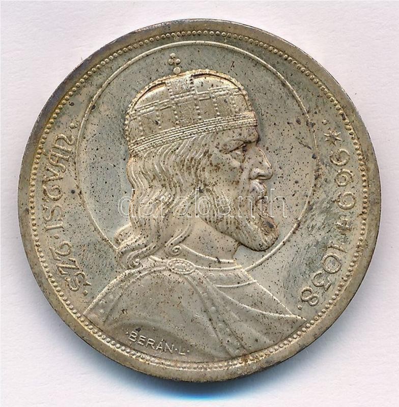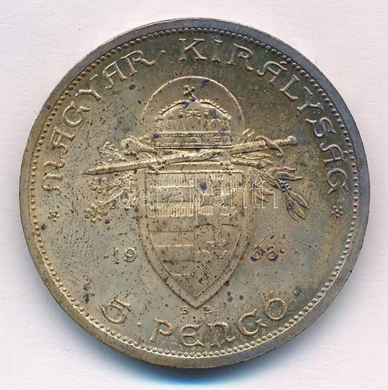 Leírás: 1938. 5P Ag "Szent István" T:1- patina Adamo P8.1