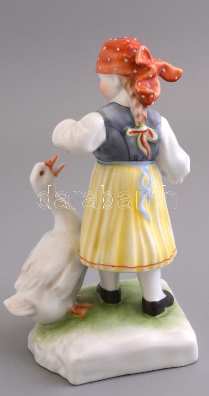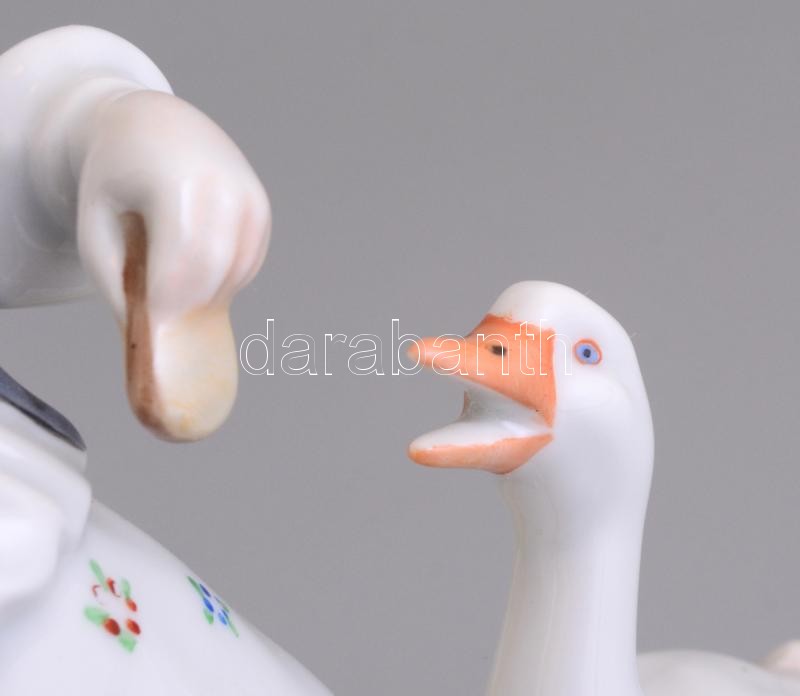 Leírás: Herendi libát etető lányka. Kézzel festett, jelzett, hibátlan m: 19 cm