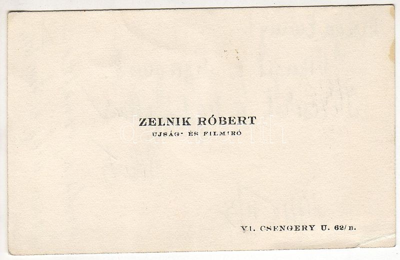 Leírás: Zelnik Róbert újság és filmíró dedikált névjegykártyája