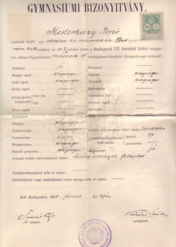 2db gimnáziumi bizonyítvány (1902 és 1903) 1898 típusú okmánybélyeggel https://www.darabanth.com/hu/39-Gyorsarveres/39.0/Festmeny-mutargy-papirregiseg-egyeb/Okmanyok~212/2db-gimnaziumi-bizonyitvany-1902-es-1903-1898-tipusu-okmanybelyeggel~II71871