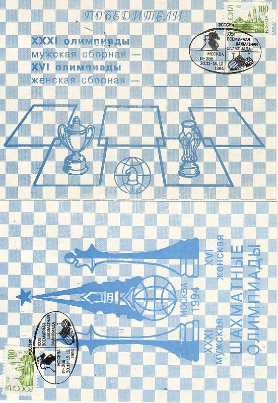 Leírás: 2db sakk-képeslap a moszkvai olimpiai bélyegzéssel