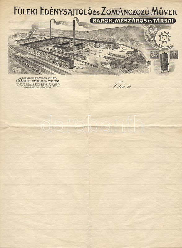 Leírás: 1900 Edénysajtoló Művek Fülek díszes számla