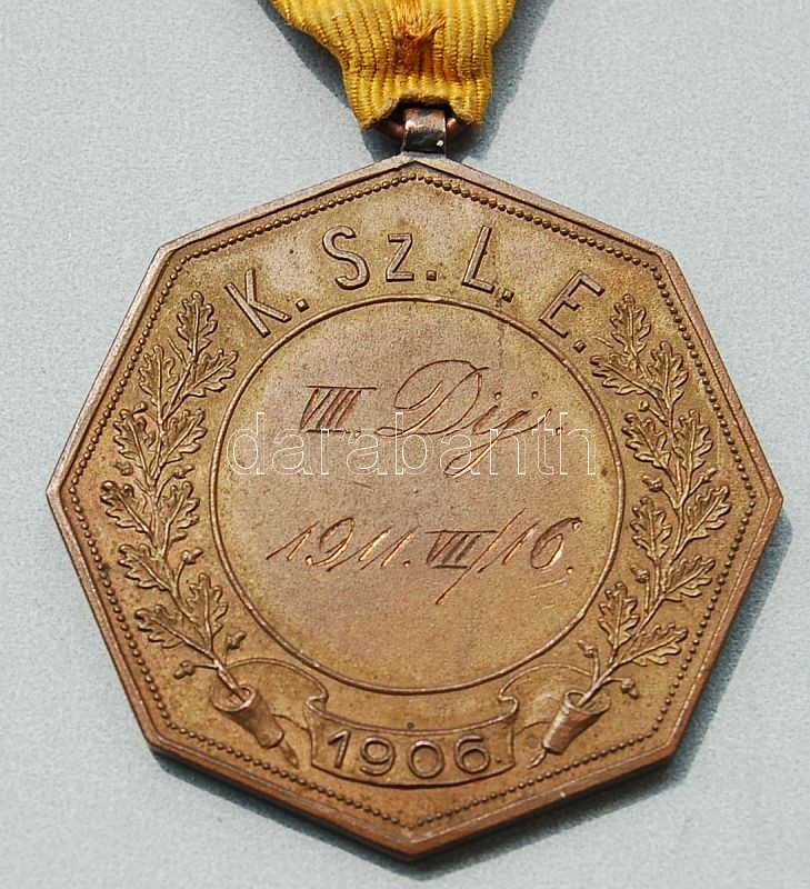 Leírás: 1906. "Kispest-Szentlőrinci Lövészegyesület" Br, szalaggal T:2