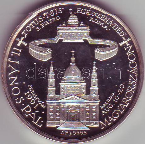 Leírás: 1991. "II.János Pál látogatása" Ag 31g díszdobozban T:PP