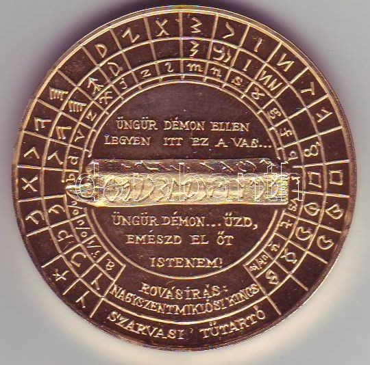Modern aranyozott fémplakett "Magyarok eredete-rovásírás" T:BU https://www.darabanth.com/hu/39-Gyorsarveres/39.0/Numizmatika/Kulfoldi-es-magyar-emlekveretek-plakettek-zsetonok-kituntetesek-jelvenyek~231/Modern-aranyozott-femplakett-Magyarok-eredete-rovasiras-TBU~II76499