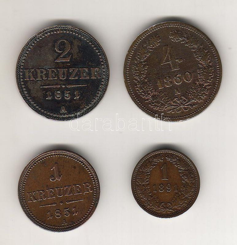 Leírás: Ausztria 1851A 1Kr T:2, 1891. 1Kr T:2,3, 1851A 2Kr T:2/3 ph., 1860A 4Kr T:3/4