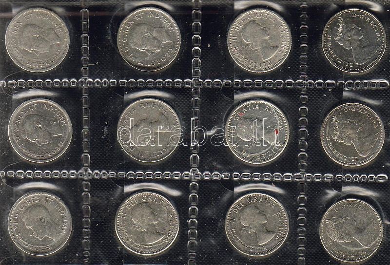 Leírás: Kanada 1939-1968. VI.György + II.Erzsébet 10cent Ag (12x) 10 klf db T:1,2,3