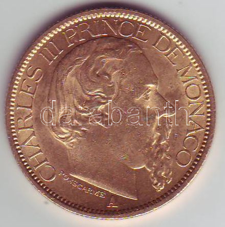 Leírás: Monako 1886. III.Károly 100Fr Au 32,258g RR!! Csak 5000db! T:2+