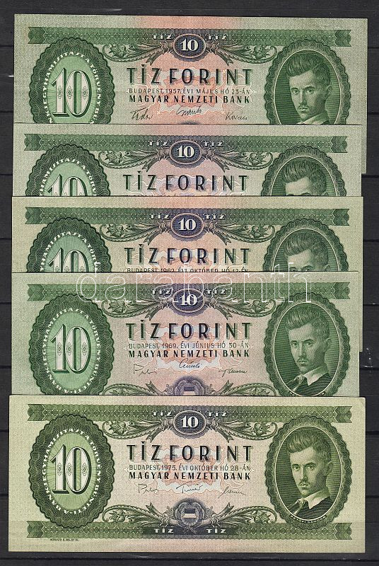 Leírás: 1957,1960,1962,1969,1975. 10Ft 5 klf db T:II Csak egyszer hajtva!