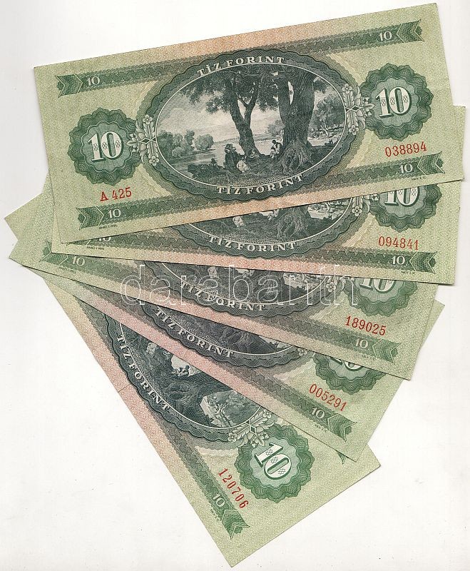 1957,1960,1962,1969,1975. 10Ft 5 klf db T:II Csak egyszer hajtva! https://www.darabanth.com/hu/39-Gyorsarveres/39.0/Numizmatika/Magyar-es-kulfoldi-bankjegyek~223/1957-1960-1962-1969-1975-10Ft-5-klf-db-TII-Csak-egyszer-hajtva~II76433