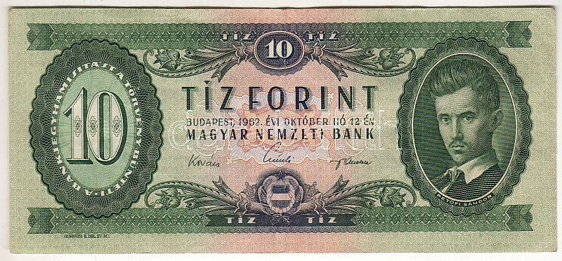 Leírás: 1962. 10Ft (variáns) sorozatszám "3"-as számjegyének felső része egyenes T:II