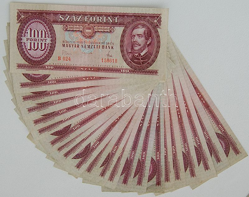 1968. 100Ft (25x) T:II Többségében csak egyszer hajtott! https://www.darabanth.com/hu/39-Gyorsarveres/39.0/Numizmatika/Magyar-es-kulfoldi-bankjegyek~223/1968-100Ft-25x-TII-Tobbsegeben-csak-egyszer-hajtott~II76426