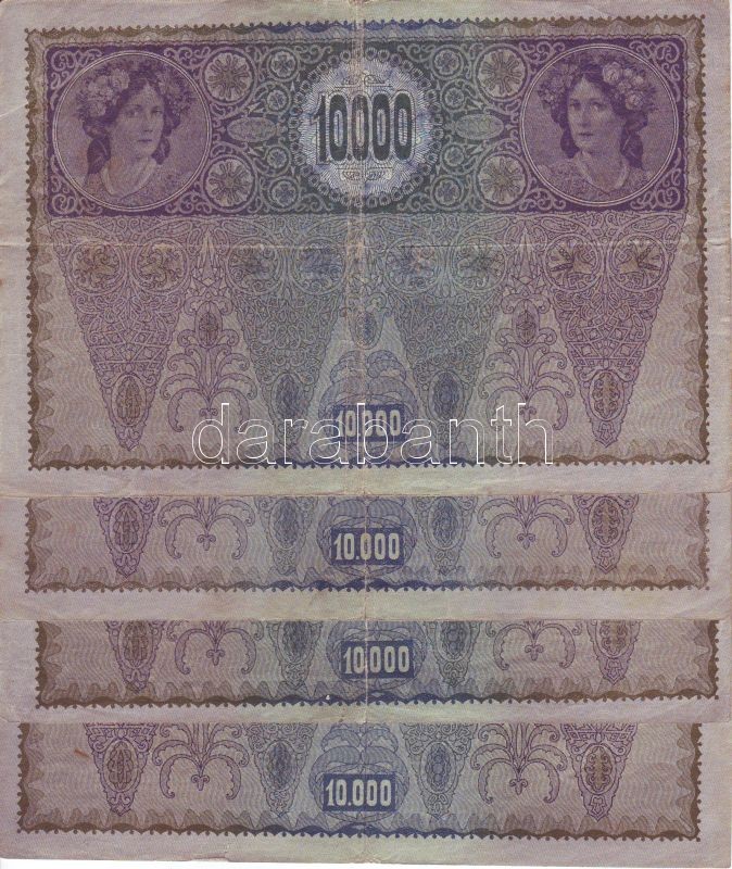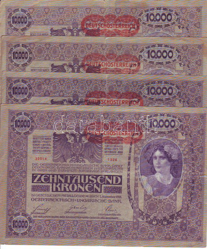 Leírás: Ausztria 1918. 10.000K (4x) piros "Deutschösterreich" fny-sal T:III/IV