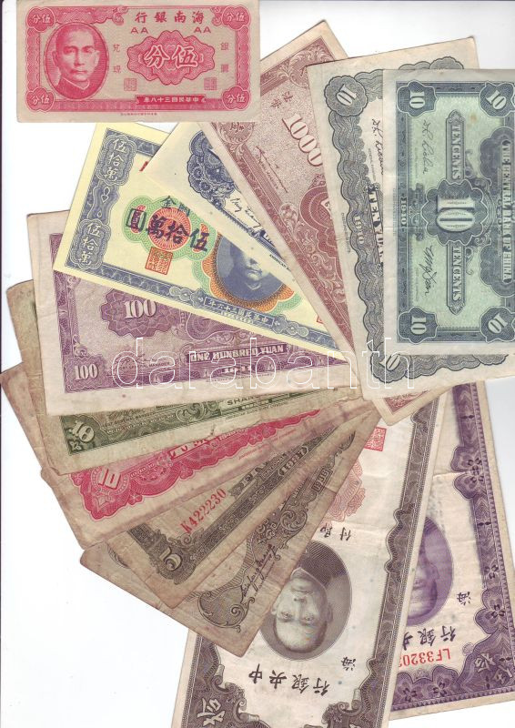 Kína 1928-38. 13 klf db T:I,II,III,IV https://www.darabanth.com/hu/39-Gyorsarveres/39.0/Numizmatika/Magyar-es-kulfoldi-bankjegyek~223/Kina-1928-38-13-klf-db-TI-II-III-IV~II76147