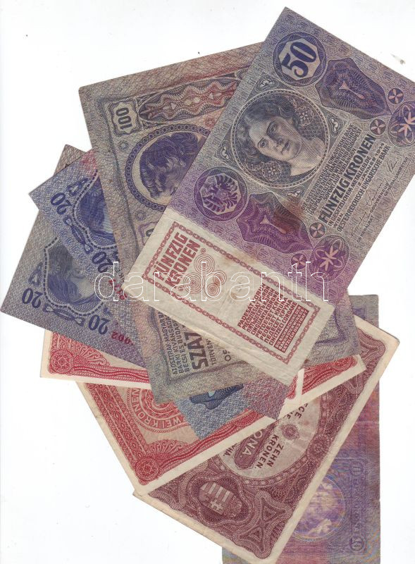 Leírás: Kis korona tétel 1920. 2K 2 klf típusban T:II, 1904. 10K T:IV, 1920. 10K T:III/IV, 1913. 20K 2 klf típusban T:II, 1914. 50K T:IV, 1912. 100K T:II/III összesen 8 klf db