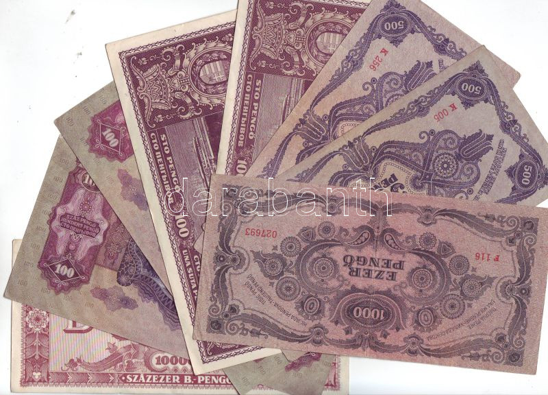Kis pengő-inflapengő tétel 1930-1946. 21 db T:I,II https://www.darabanth.com/hu/39-Gyorsarveres/39.0/Numizmatika/Magyar-es-kulfoldi-bankjegyek~223/Kis-pengo-inflapengo-tetel-1930-1946-21-db-TI-II~II76441