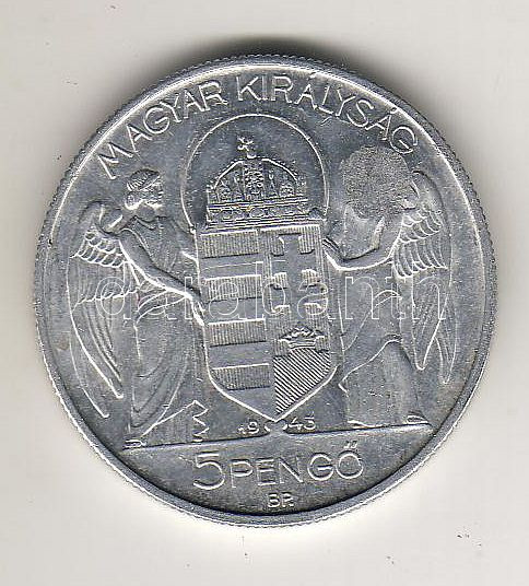 Leírás: 1943. 5P "sarló-kalapács" ellenjeggyel próba vagy utánveret?! T:2/3