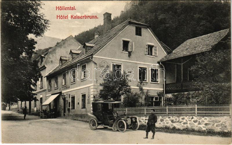1907 Höllental, Hotel Kaiserbrunn, automobile https://www.darabanth.com/hu/39-Nagyaukcio/39.1/Kepeslapok/Ausztria~16055/1907-Hollental-Hotel-Kaiserbrunn-automobile~II2716152