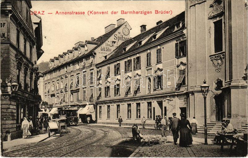 1912 Graz, Annenstrasse (Konvent der Barmherzigen Brüder) / street, sh... https://www.darabanth.com/hu/39-Nagyaukcio/39.1/Kepeslapok/Ausztria~16055/1912-Graz-Annenstrasse-Konvent-der-Barmherzigen-Bruder-street-shop-of-Spitzer-tram-road-con~II2715800