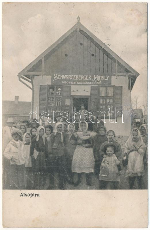 1918 Alsójára, Iara de Jos, Iara; Schwarczberger Mihály zsidó vegyeske... https://www.darabanth.com/hu/39-Nagyaukcio/39.1/Kepeslapok/Erdely~16041/1918-Alsojara-Iara-de-Jos-Iara-Schwarczberger-Mihaly-zsido-vegyeskereskedo-uzlete-es-saja~II2724879