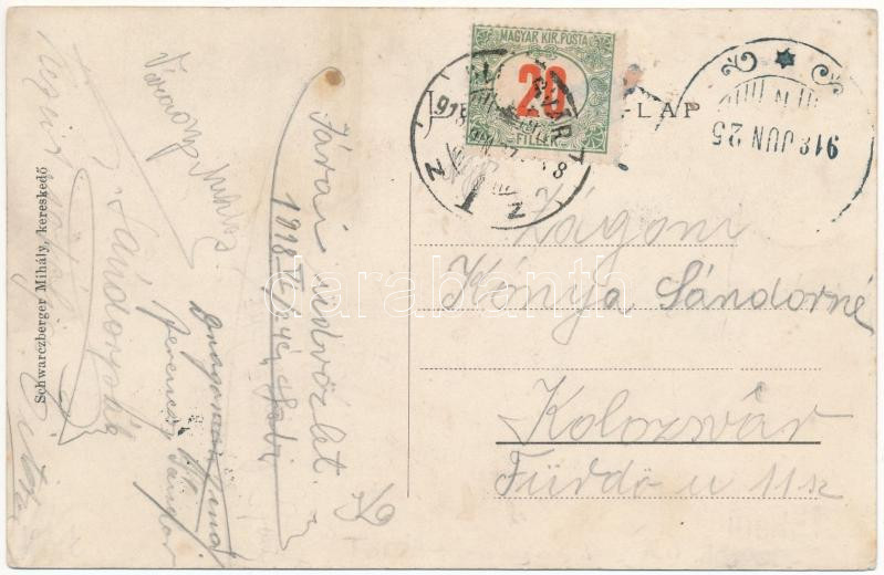 Leírás: 1918 Alsójára, Iara de Jos, Iara; Schwarczberger Mihály zsidó vegyeskereskedő üzlete és saját kiadása / Jewish shop