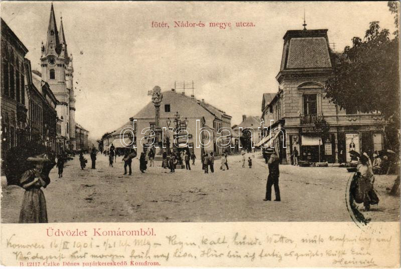 1901 Komárom, Komárnó; Fő tér, Nádor és Megye utca, Stettler Ignác és ... https://www.darabanth.com/hu/39-Nagyaukcio/39.1/Kepeslapok/Felvidek~16042/1901-Komarom-Komarno-Fo-ter-Nador-es-Megye-utca-Stettler-Ignac-es-Meszaros-Andras-u~II2725106