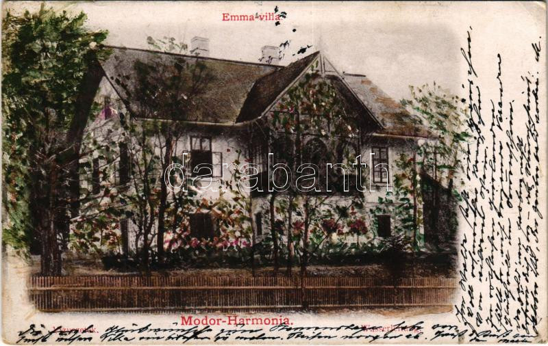 1910 Modor-Harmónia, Modra; Emma-villa, vízvezeték - kézzel festett / ... https://www.darabanth.com/hu/39-Nagyaukcio/39.1/Kepeslapok/Felvidek~16042/1910-Modor-Harmonia-Modra-Emma-villa-vizvezetek-kezzel-festett-Wasserleitung-villa-wat~II2729309