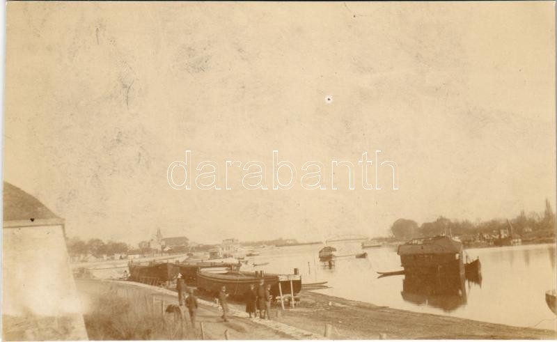 Leírás: Komárom, Komárnó; kikötő katonákkal / Danube river port, ships and soldiers. photo