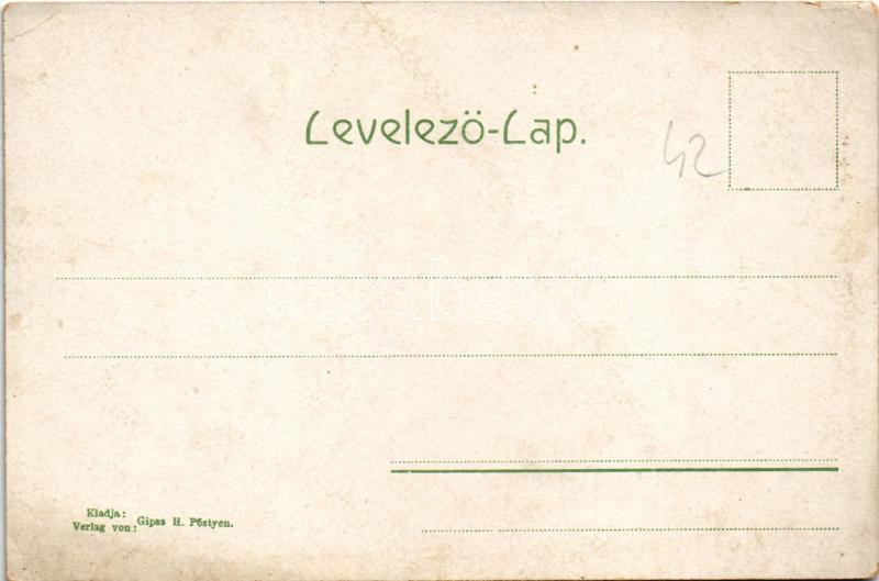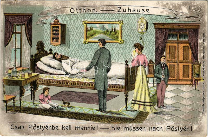 Pöstyén, Piestany; Otthon. Csak Pöstyénbe kell mennie! Gipsz H. kiadása / Zuhause - Sie müssen nach Pöstyén! / At home. He only needs to go to Piestany! Art Nouveau, litho (EK)