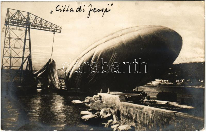 A Pola felett lelőtt Citta di Jesi olasz léghajó maradványai / K.u.K. Kriegsmarine. Citta di Jessi Italian military balloon shot in Pola. R. Marincovich (EK)