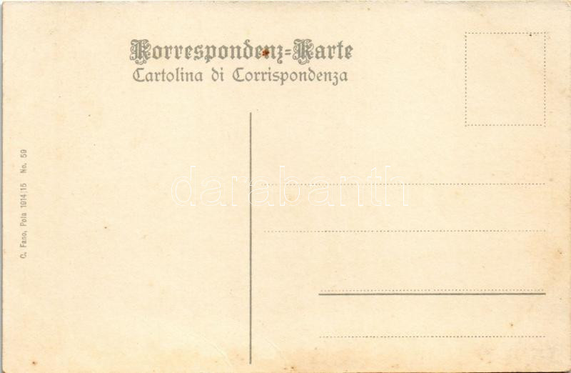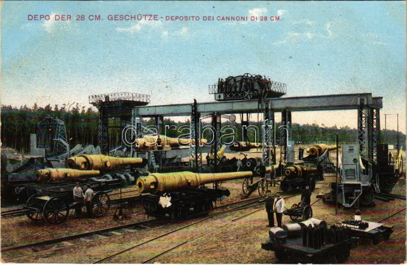 Depo der 28 cm Geschütze / Deposito dei cannoni di 28 cm / 28 cm-es hajóágyúk raktára és szállítása vasúton Polában a hajógyárban / WWI Austro-Hungarian Navy, K.u.K. Kriegsmarine, depot and transport of battleships cannons in the Pula shipyard. C. Fano 1914/15. No. 59.