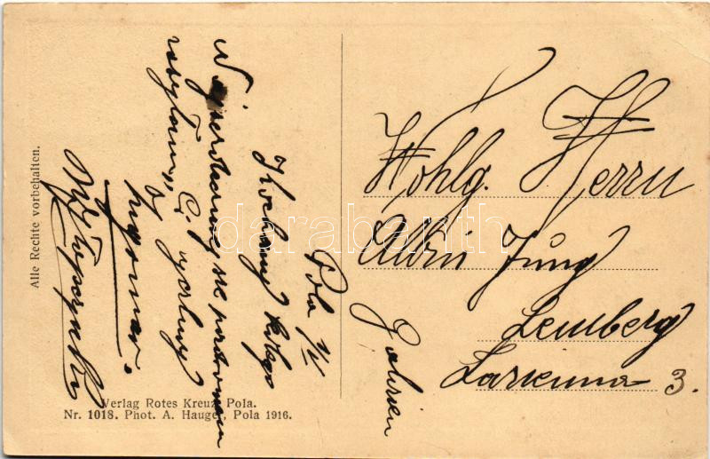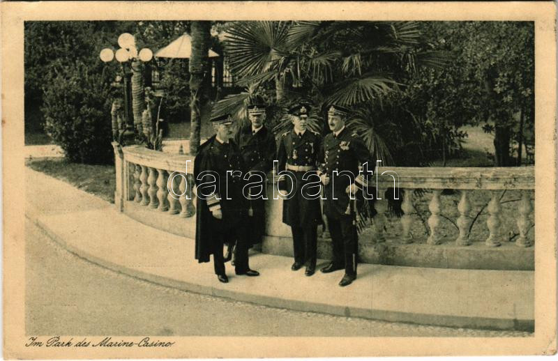 Pola, Pula; Im Park des Marine Casino. K.u.K. Kriegsmarine / Austro-Hungarian Navy mariners' casino park with admirals. Phot. A. Hauer Nr. 1018. / Osztrák-magyar haditengerészeti kaszinó parkja, tengerész tisztek (EK)