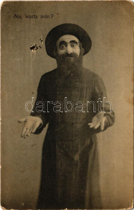 1908 Nu, warta zoln? / Zsidó férfi. Judaika / Jewish man. Judaica (EK) https://www.darabanth.com/hu/39-Nagyaukcio/39.1/Kepeslapok/Judaika~16085/1908-Nu-warta-zoln-Zsido-ferfi-Judaika-Jewish-man-Judaica-EK~II2738144