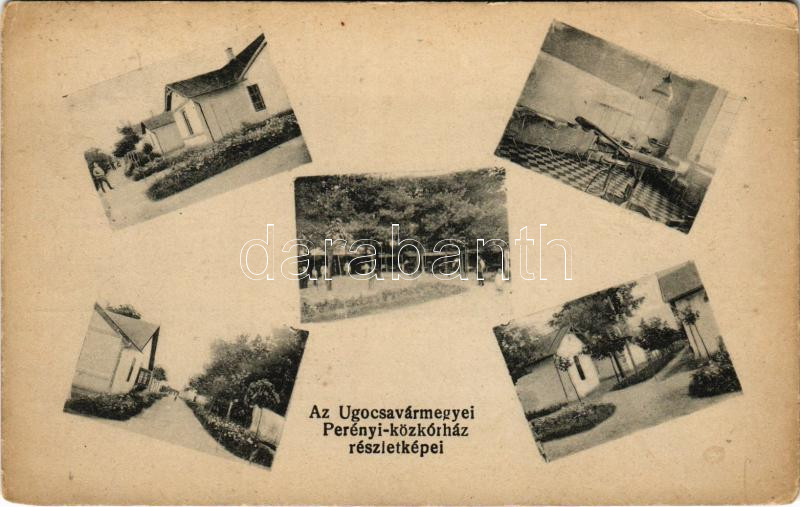 Nagyszőlős, Nagyszőllős, Vynohradiv (Vinohragyiv), Sevljus, Sevlus; Ugocsa vármegyei Perényi közkórház (kórház), belső és külső nézet. Divald kiadása / Ugocsa county public hospital, interior and exterior view (EK)