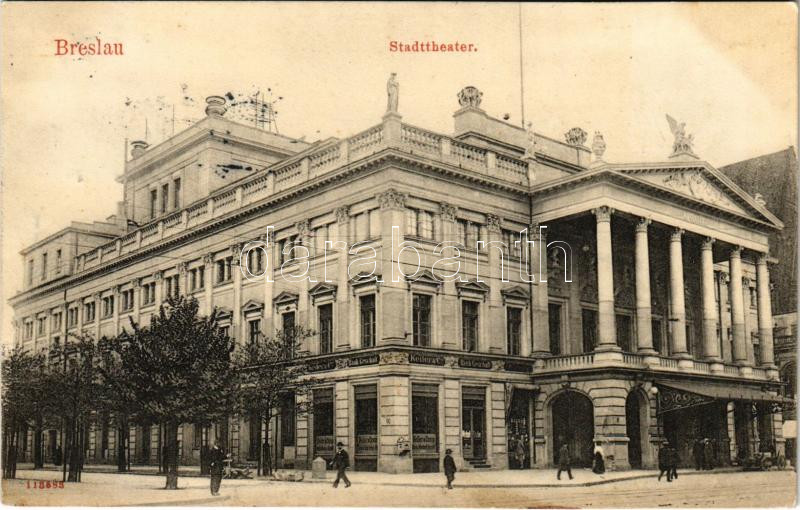 Leírás: 1907 Wroclaw, Breslau; Stadttheater, Keiler & Co. Bank Geschäft / theatre, shop (fl)