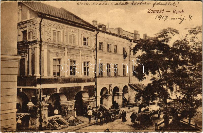 1917 Zamosc, Ryenk / street, market vendors + "K.u.k. Infanterier... https://www.darabanth.com/hu/39-Nagyaukcio/39.1/Kepeslapok/Lengyelorszag~16102/1917-Zamosc-Ryenk-street-market-vendors-plus-Kuk-Infanterieregiment-Schoedler-No-30-Superarbi~II2737001