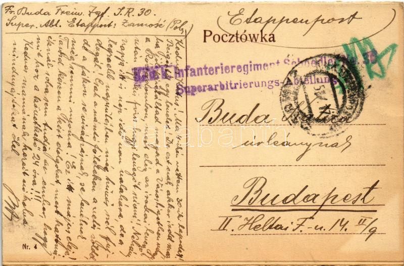 Leírás: 1917 Zamosc, Ryenk / street, market vendors + "K.u.k. Infanterieregiment Schoedler No. 30. Superarbitrierungs-Abteilung"