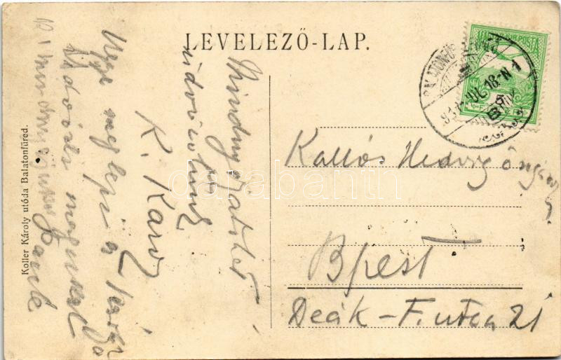 Leírás: Balatonfüred, Templom utca, Koller Károly utóda üzlete és saját kiadása