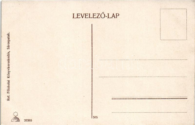 Leírás: Sárospatak, Járásbíróság magyar címerrel. Kiadja a Ref. Főiskolai Könyvkereskedés