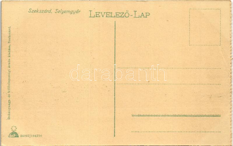 Szekszárd, Selyemgyár, M. kir. földművelésügyi minisztérium épülete https://www.darabanth.com/hu/39-Nagyaukcio/39.1/Kepeslapok/Magyarorszag~16040/Szekszard-Selyemgyar-M-kir-foldmuvelesugyi-miniszterium-epulete~II2718520