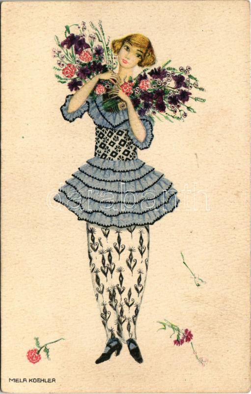 Fashion lady. B.K.W.I. 641-6. s: Mela Koehler https://www.darabanth.com/hu/39-Nagyaukcio/39.1/Kepeslapok/Muveszlapok~16101/Fashion-lady-BKWI-641-6-s-Mela-Koehler~II2736510