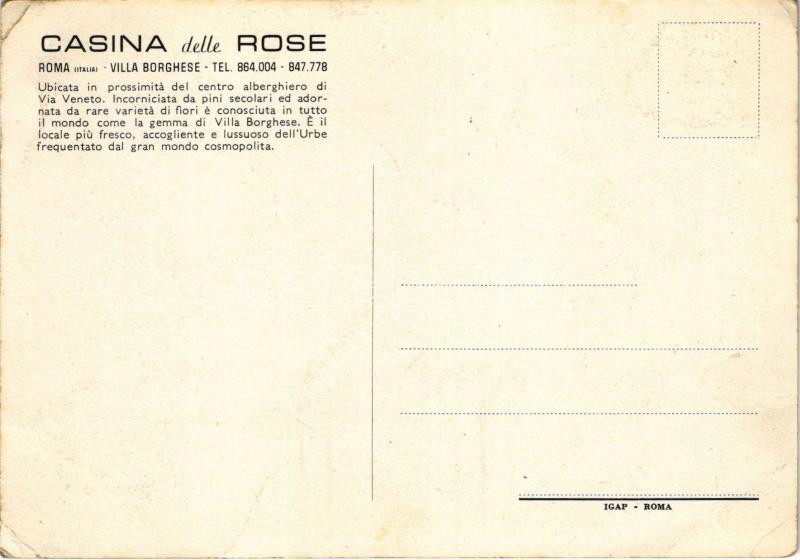 Leírás: Roma, Rome; Villa Borghese, Casina delle Rose e Lucciola, Gran Cafe Ristorante / hotel, restaurant and cafe, advertisement (EK)