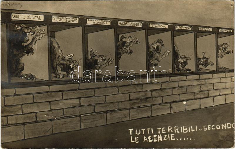 Tutti terribili.. secondo le agenzie... / Első világháborús olasz kato... https://www.darabanth.com/hu/39-Nagyaukcio/39.1/Kepeslapok/Propaganda-politika~16112/Tutti-terribili-secondo-le-agenzie-Elso-vilaghaborus-olasz-katonai-gunyos-propaganda-W~II2738865