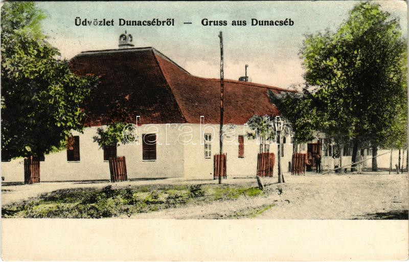 Leírás: 1909 Dunacséb, Dunaczéb, Celarevo; községháza (?) / town hall (?)