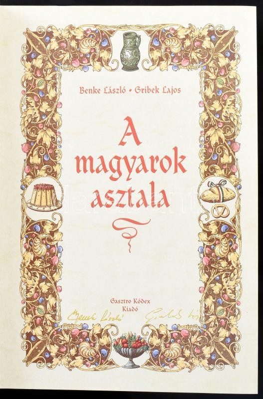 Benke László-Gribek Lajos: A magyarok asztala. Gasztro Kódex. Szigetszentmiklós, 2005., Gasztro Kódex Bt., 754+6 p. Kiadói rendkívül szépen díszített egészbőr-kötés, Zajácz Tamás-kötés, szép állapotban.