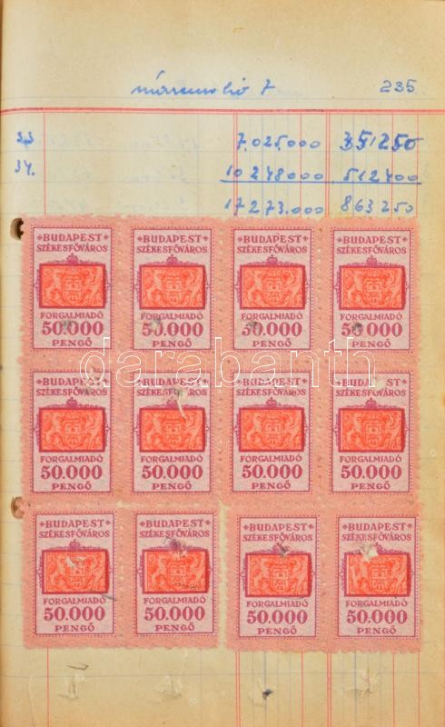 1945-1946 Budapesti forgalmi adó könyv több száz adóbélyeggel / Sales ... https://www.darabanth.com/hu/39-Nagyaukcio/39.1/Kulfoldi-filatelia-es-postatortenet/Okmanybelyegek~16029/1945-1946-Budapesti-forgalmi-ado-konyv-tobb-szaz-adobelyeggel-Sales-tax-book-with-hundreds-o~II2727499